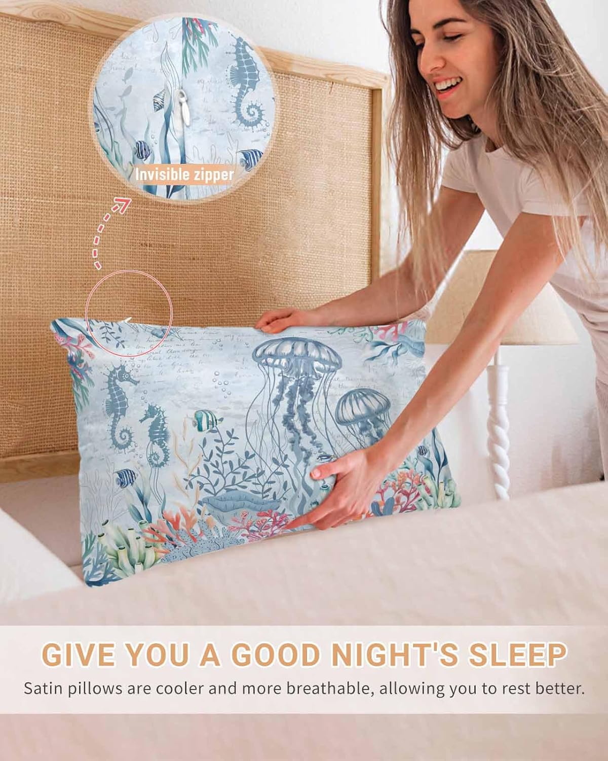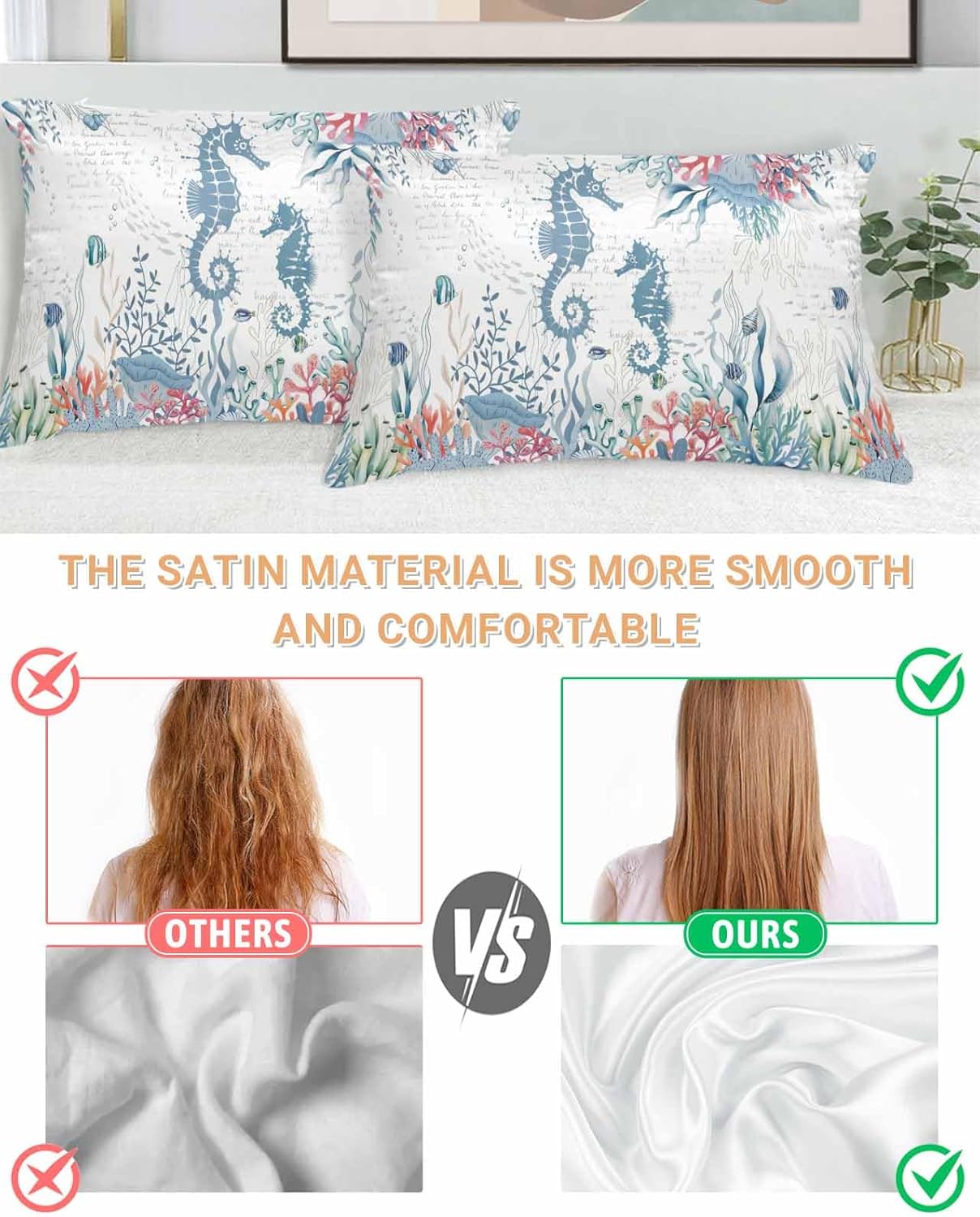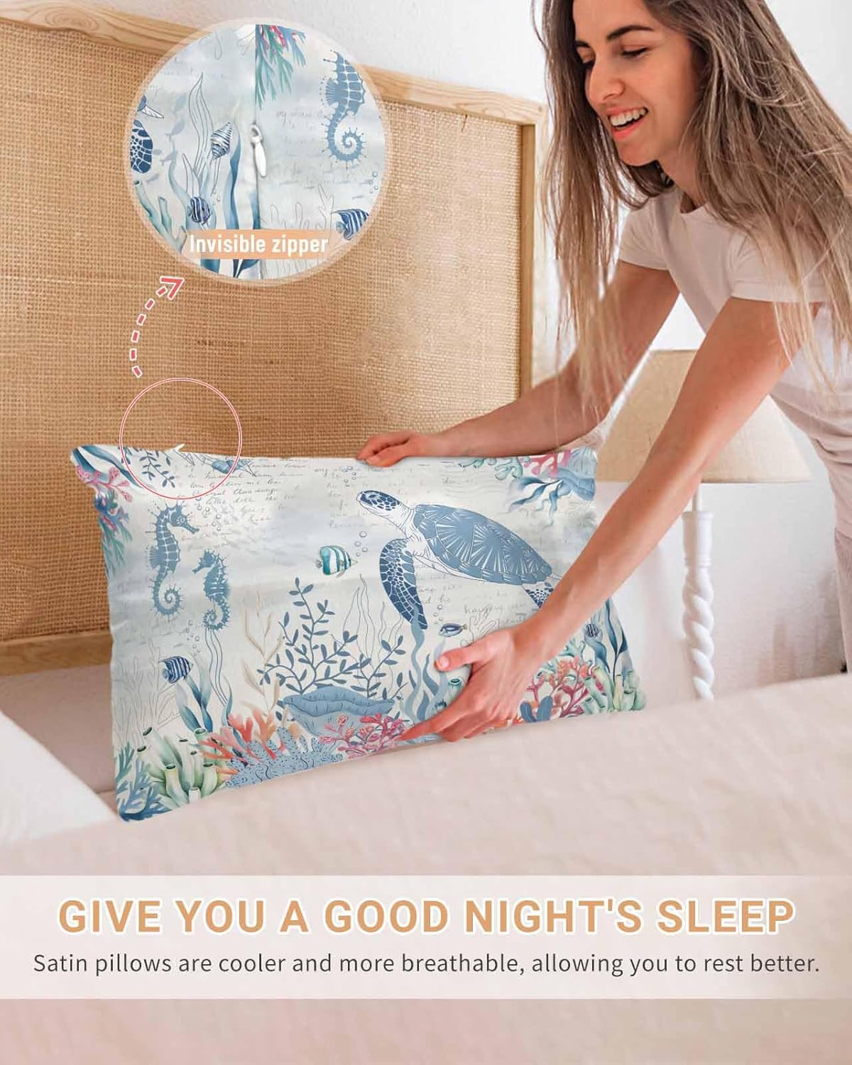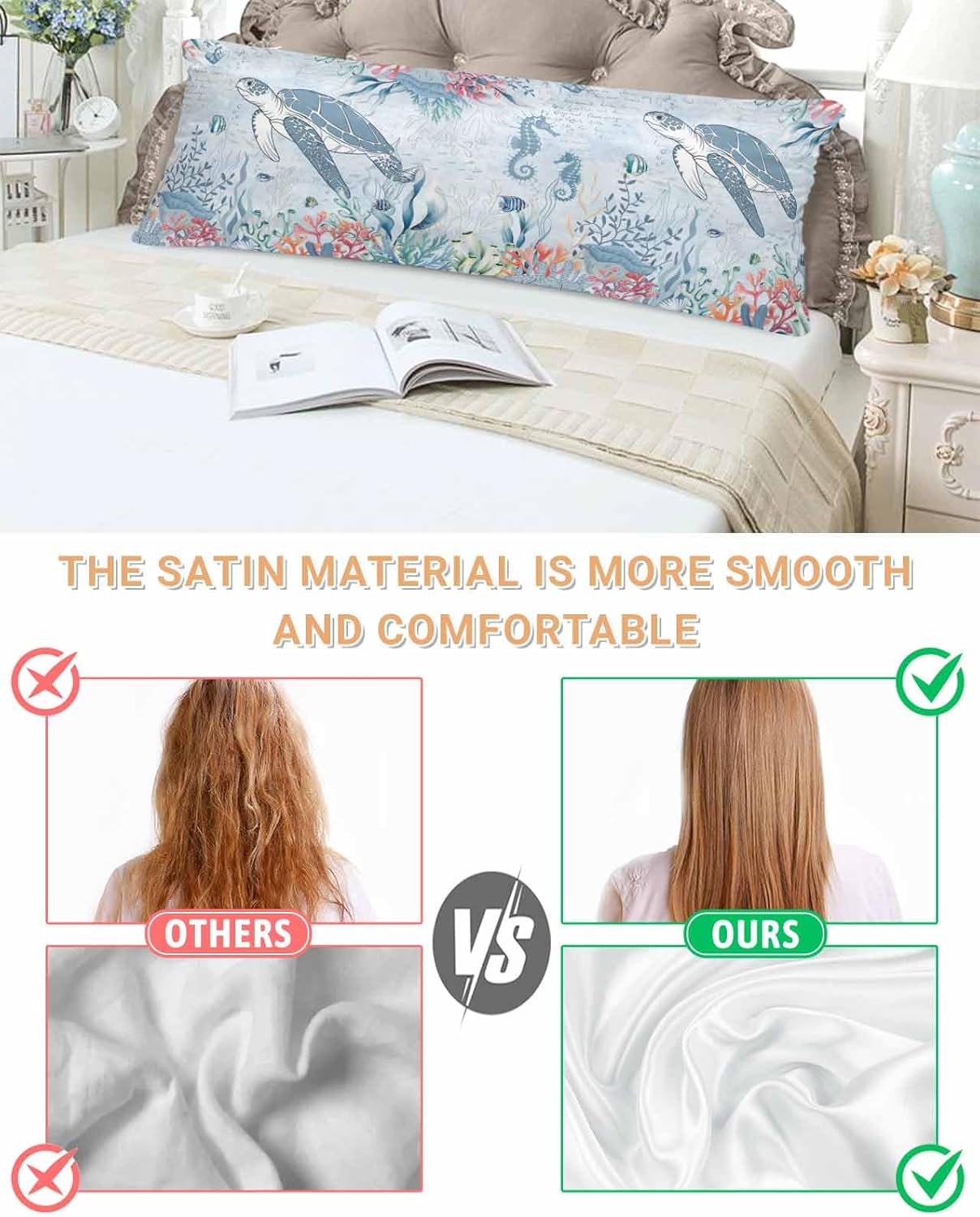 Why choose our satin pillowcaseWe spend approximately one-third of our lives sleeping. We will have slept for 20 years by the time of we turn 60, isn't it a great reason to enhance your sleep routine- Ultra Soft & Smooth Satin Pillowcase: Our satin pillow cases are silky, soft, and lustrous. The smooth surface of satin pillow cover allows your skin and hair to slide over the pillow shams very gently and freely, it creates less friction between your hair&skin and the bedroom satin pillowcase, helps reducing facial wrinkles, avoid dry/knotted hair and hair loss.- Satin Cooling Pillowcase: Sleeping on breathable satin pillow cases, you will feel so cool each time you turn over, helps sleeping better overnight and enjoy sweet dreams, great for hot sleepers and side sleepers.- Sturdy Stealthily Hidden Zippered Design: Hidden zipper closure design makes the satin pillow cover hold your pillow perfectly overnight without moving around. Hidden zipper at the end allows you to fit the pillow into the satin pillow shams easily. The zipper on our cooling pillowcases is stitched inward. Don't even see it or feel it. Don't worry catching your hair. Perfect for down feather pillows and any other kind of pillow.INFORMATIONMaterial: PolyesterSize:-Standard(20 x 26 Inches) x 2-Queen(20 x 30 Inches) x 2-King (20 x 36 Inches) x 2-Cal King (20 x 40 Inches) x 1-Body(20 x 54 Inches) x 1Color: Blue, Orange, Green, Yellow, Black, Gray, Brown, Beige...FANCY DEVORATIVEThis silky satin pillowcase isn't just practical, the breathable pillow cover also adds a fancy touch to your home decor. Whether it's the bedroom, living room, car, patio, office or anywhere else, the pillow sham brings an elegant and classy vibe.CARE METHODMachine Washable, Cold Wash, Gentle Cycle, Shade Dry, Low Iron, No Dry Clean, No Bleach.